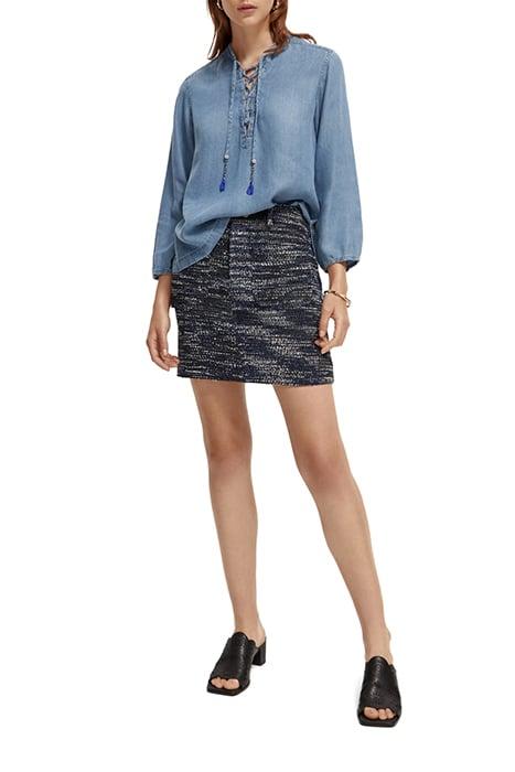 Elevate your everyday look with the Scotch & Soda Lace-Up Denim Washed Indigo Tencel Shirt and stand out in style.