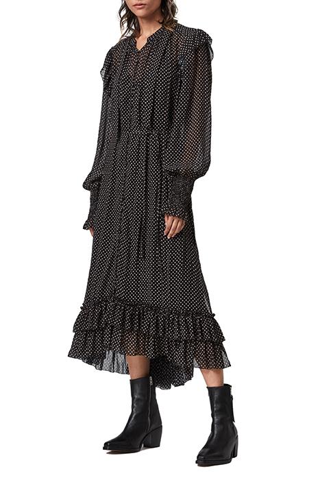 Lara Dot Dress Black. Perfect for layering or standing out on its own, this Black Midi Dresse is the definition of understated luxury. A key addition to any wardrobe, this piece is designed for those who seek effortless style.