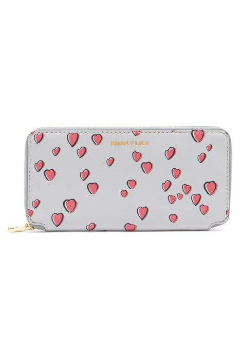 LIGHT GRAY LEATHER SMALL HEARTS WALLET