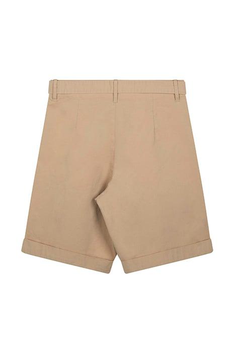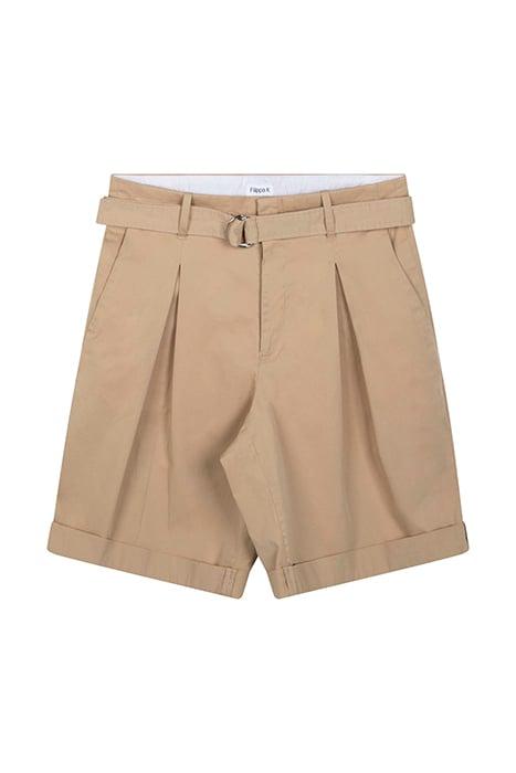 Slouchy belted shorts with front pleats and side slash pocke ts. Self belt with D-ring at waist. Thigh length with drop r ise and narrow hemline. To be worn rolled up.