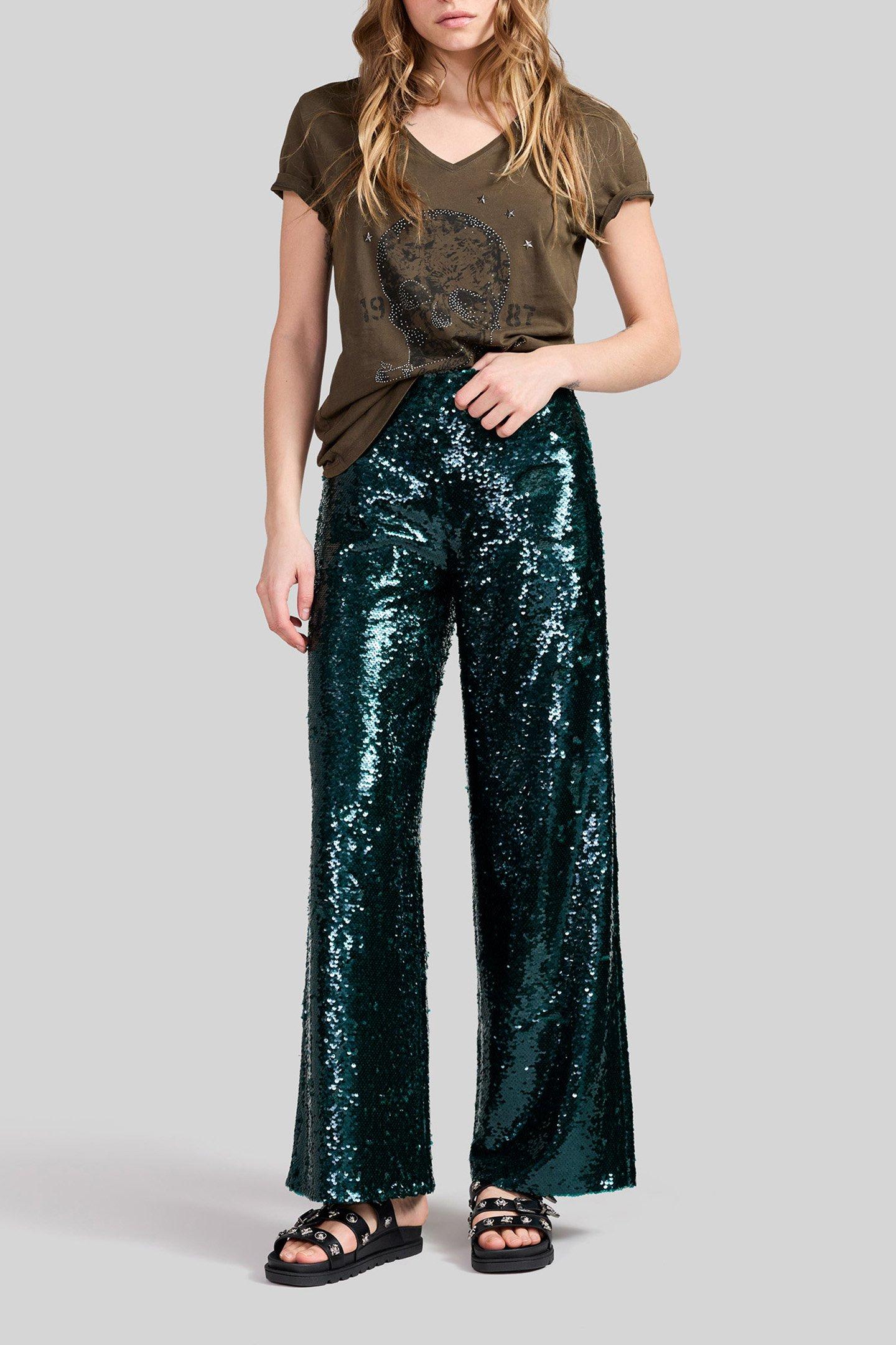 Star Look Or Disco Vibe? Don'T Be Stingy With Sequins And Put On These Gorgeous Trousers As They'Re Fully Embroidered With Malachite Green Sequins. Precious.
