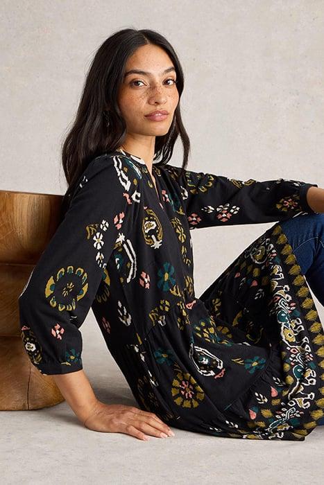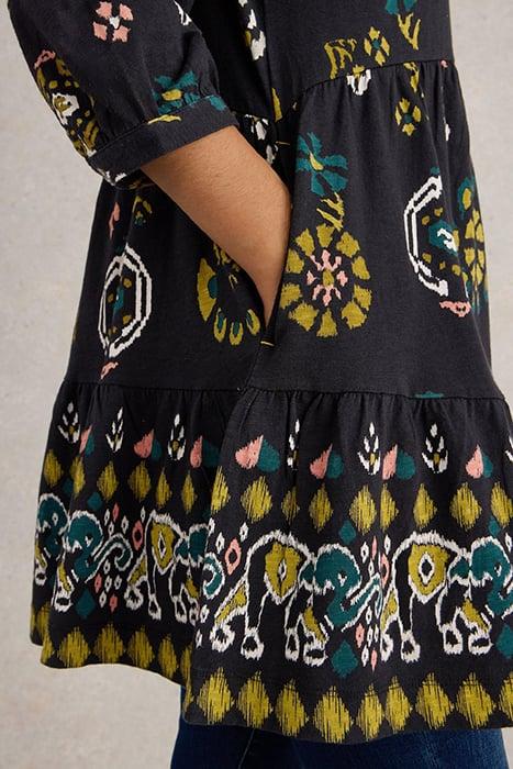 Marta Tunic, Black Print, 100% Cotton, Wipe With Cloth Only
