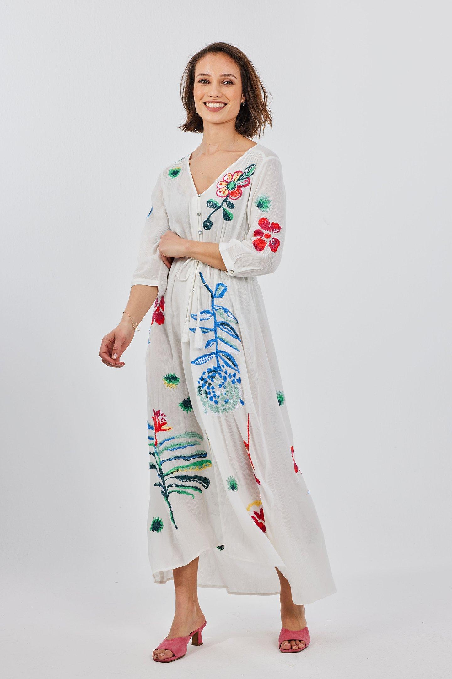 MAXI DRESS BOTANIC SPICE EMBRO OFFWHITE WITH BOTANIC SPICE E