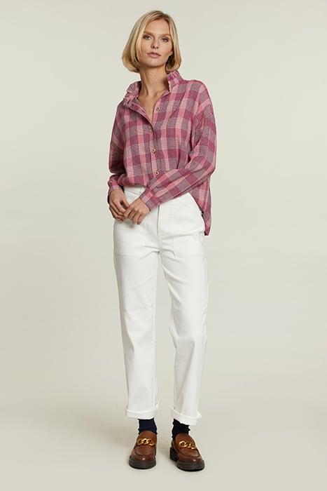 MULTI CHECKED BLOUSE RUFFLE COLLAR