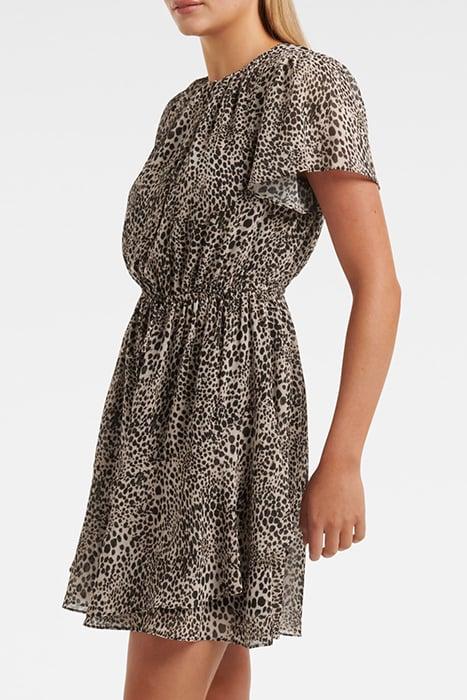 NAHLA FLUTTER SLEEVE MINI SEPIA LEOPARD
