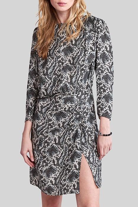 OFF-WHITE SATIN DRESS WITH GRAPHIC PYTHON PRINT