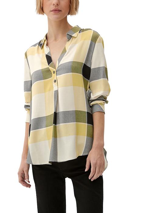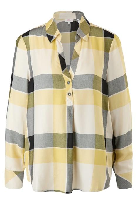 Blouse: Achterpand: Langere zoom aan de achterkant, Eigenschap: Hoogwaardig, Gelegenheid: Casual, Hals: V-hals, Kraag: Liggende kraag, Materiaal: Modal, Viscose, Motief: Geruit, Mouwen: Manchetten, Pasvorm: Loose fit, Sluiting: Knoop, Stijl: Klassiek, Stof: Weefsel, Zoom: Afgeronde zoom.