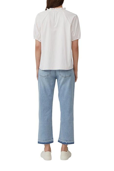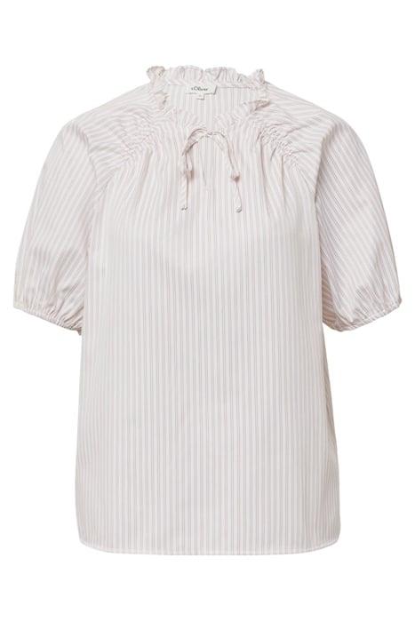 Details: Ruches, Split Gelegenheid: Casual Hals: Ronde Hals Materiaal: Katoenmix Motief: Met Motief All-Over, Gestreept Mouwen: Korte Mouwen Pasvorm: Relaxed Fit Schouderbandjes: Om Te Strikken Stijl: Casual Stof: Weefsel