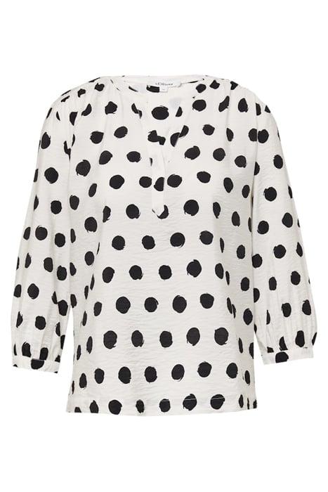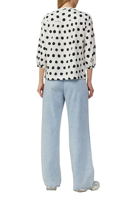 Details: Plooitjes Eigenschap: Gestructureerd, Soepel Gelegenheid: Casual Hals: V-Hals Materiaal: Viscosemix Mouwen: 3/4-Mouwen, Oversized Schouders, Manchetten Pasvorm: Regular Fit Print: Print All-Over Stijl: Casual, Vrouwelijk