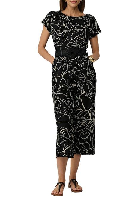 Band: Met Riemlussen Beenlengte: Culotte Gelegenheid: Party, Business Hals: Lage, Ronde Hals Mouwen: Oversized Schouders Pasvorm: Regular Fit Pijpen: Wide Leg Print: Print All-Over Sluiting: Blinde Rits Voering: Deels Gevoerd, Jersey Voering Zak: Steekzak