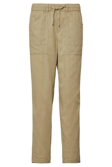 Band: Elastische Band Bandhoogte: Mid Rise Beenlengte: Ankle Broekmodel: Relaxed Fit Details: Elastisch Materiaal: Linnenmix Pijpen: Tapered Leg Sluiting: Zonder Sluiting, Bindband Stof: Weefsel Zak: Opgestikte Zak