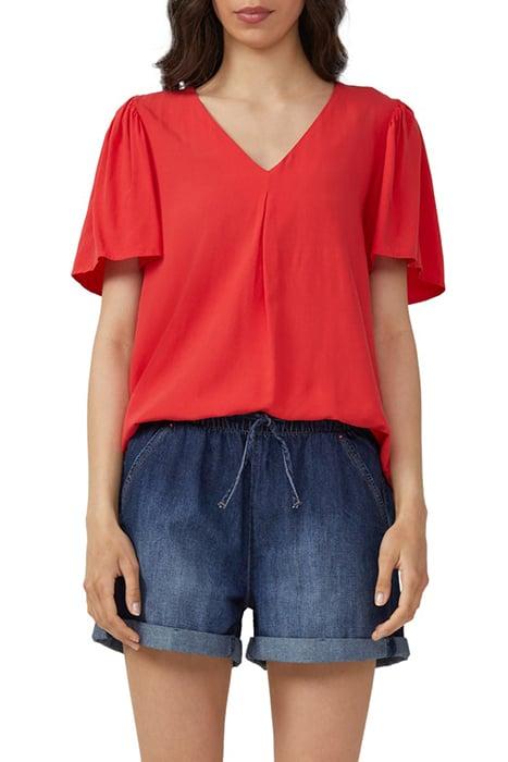Eigenschap: Luchtig Gelegenheid: Casual Hals: V-Hals Materiaal: Viscose Mouwen: Korte Mouwen, Wijde Mouwen, Pofmouwen Pasvorm: Regular Fit Stijl: Vrouwelijk Stof: Popeline