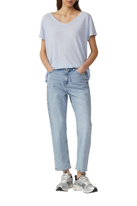 Details: Deelnaad Eigenschap: Zacht Hals: V-Hals Materiaal: Linnenmix Mouwen: Vleermuismouwen, Korte Mouwen Pasvorm: Loose Fit Stof: Jersey Zoom: Afgeronde Zoom