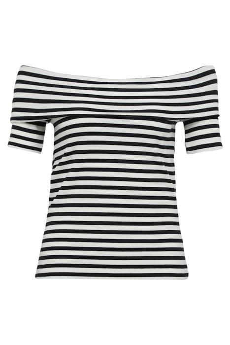 Eigenschap: Zacht, Elastisch Gelegenheid: Casual Hals: Off-Shoulder Hals Materiaal: Katoenmix Motief: Gestreept Mouwen: Halflang Pasvorm: Getailleerd, Slim Fit Stof: Jersey, Ribstof