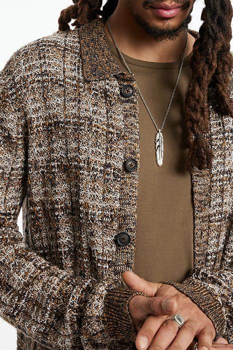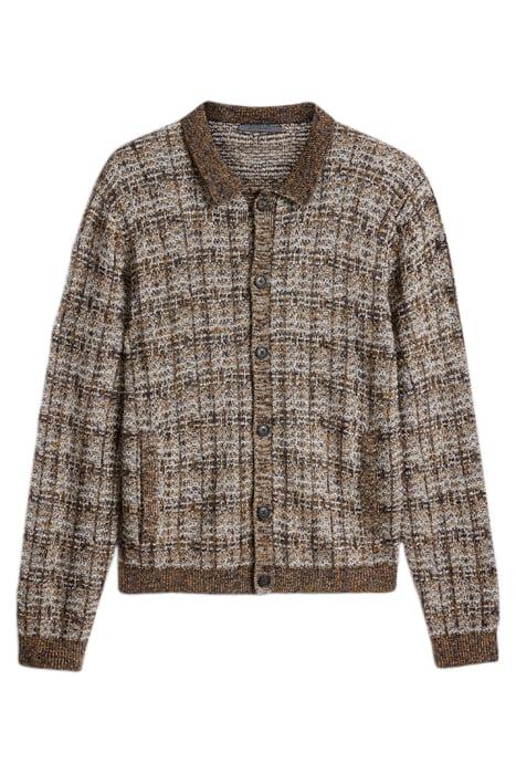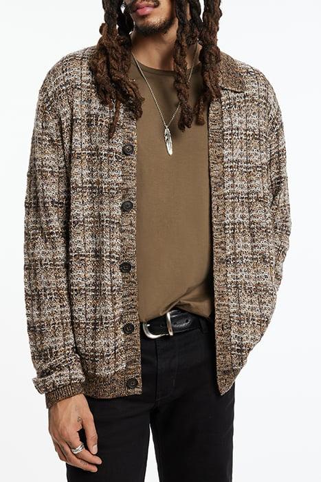 The Owsley Offers An Elevated Jacket Option. The Multi-Tonal Yarn Has Been Masterfully Knitted To Great An Open Grid-Stitch. The Loose Pattern Has A Playful Texture That'S Pulled Together By A Button Front Centre Placket.