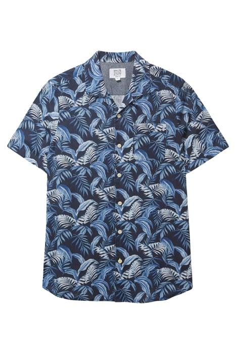 PALM LEAF PRINTED SS SHIRT DARK NAVY