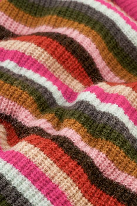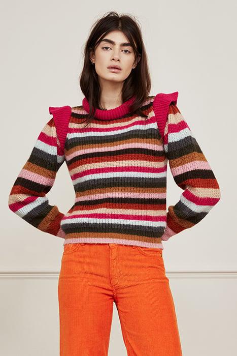 Fine Knitted, Multicolored Pullover With A Round Neckline And Raised Shoulders. Rainbow Pullover Has Balloon Sleeves And Fitted Cuffs.