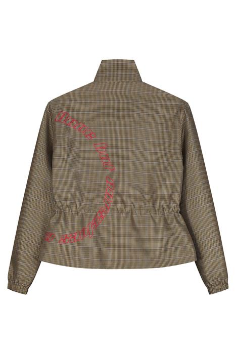 A Feminine Take On A Classic Workwear Silhouette, This Jacket Fuses A Funnel Neck Track Top With The Two Chest Pockets Of A Military Jacket And A Pleated Skirt. Cut With A Modern Oversized Fit And Crafted From Our Custom Heritage Check Knitted Fabric. It Features An Adjustable Drawstring Waistband And Is Finished With A Circular Screen Print Split Across The Front And Back.