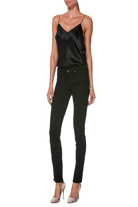 Made from our most luxuriously soft TRANSCEND fabric. Using the latest performance fiber technology, this denim features an innovative formula that combines chic with comfort and won't stretch out no matter what. It has true denim appeal and moves with you all day. Mid rise skinny featuring a leg that gets slimmer from the knee down, while its black wash lends major sleekness.
