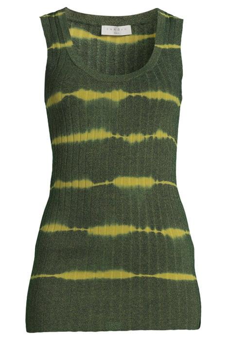 Introducing the Sleeveless Top in a stunning multi-color print by Sandro. This top is a versatile piece that can effortlessly take you from day to night with its elegant design and vibrant pattern. The sleeveless silhouette is perfect for warm weather, while the high-quality fabric ensures a comfortable and flattering fit. Pair this top with tailored pants for a polished office look or with jeans for a chic weekend outfit. Add a touch of sophistication to your wardrobe with this stylish Sleeveless Top by Sandro.