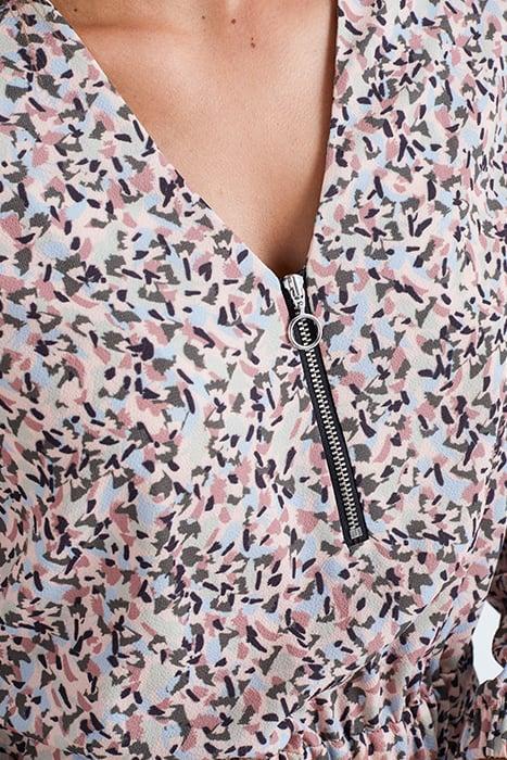 And why not change season with a super soft print? Check out this zipped, elasticated dress with a camouflage-style tachist motif, to wear under glittery zip-neck sweatshirt.