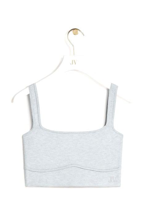 De Josh V Tinity Top In De Kleur Light Grey Melange Is Een Super Zachte, Knitwear Crop Top. Je Combineert Dit Item Perfect Met Het Phoeby Of Keet Vest In De Kleur Light Grey Melange. Maar Natuurlijk Kun Je De Top Ook Met Andere Jasjes Of Vestjes Dragen. De Top Is Gemaakt Van Een Zachte Knitwear Kwaliteit Met Ecovero Viscose, Een Duurzamere Keuze. Een Uniek Detail Op De Top Is Het Geborduurde Jv-Logo En Waving Detail Aan De Voorzijde. De Josh V Tinity Top Is Verkrijgbaar In De Kleuren Off White, Light Latte En Light Grey Melange.