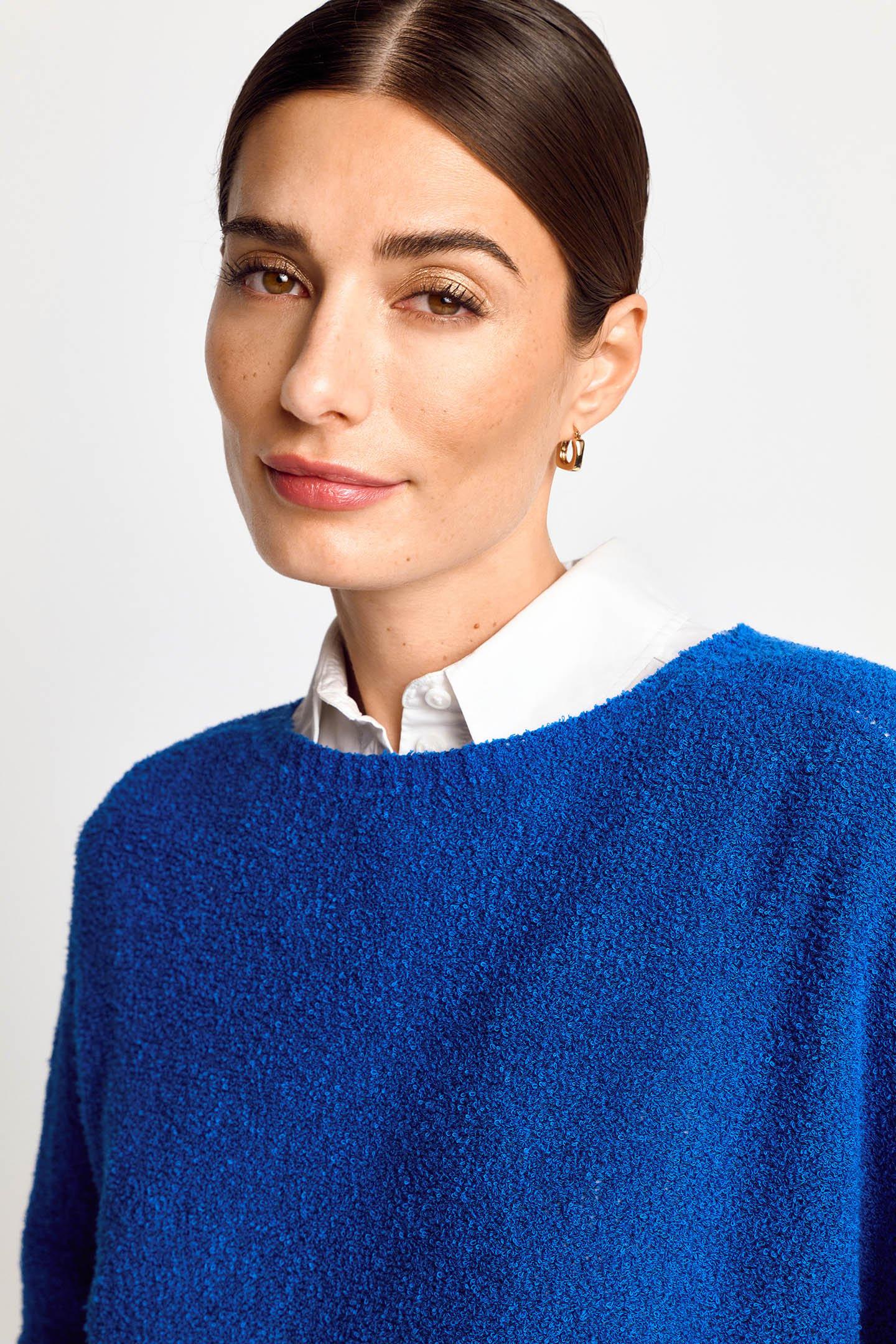 Soft Cotton Bouclé Makes This Seamless Knit Sweater An Ultra-Soft Must-Have. The Relaxed Fit And Three-Quarter Sleeves Add A Sophisticated Touch And Even More Comfort.