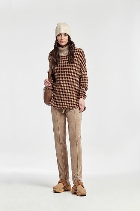 TRICOLOR KNIT HIGH NECK ASTRAL SWEATER BROWN