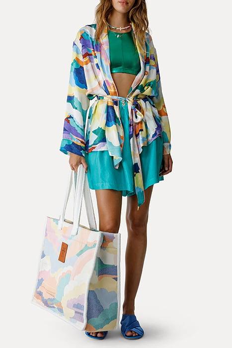 "UP ABOVE THE SKY" PRINT SATIN BELTED JACKET MORNING