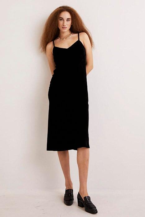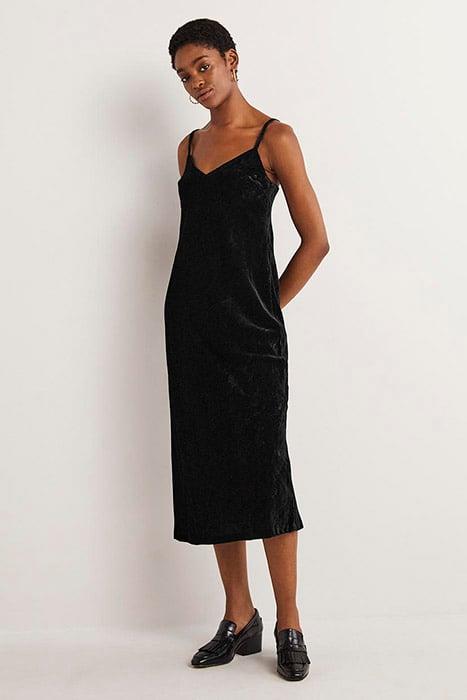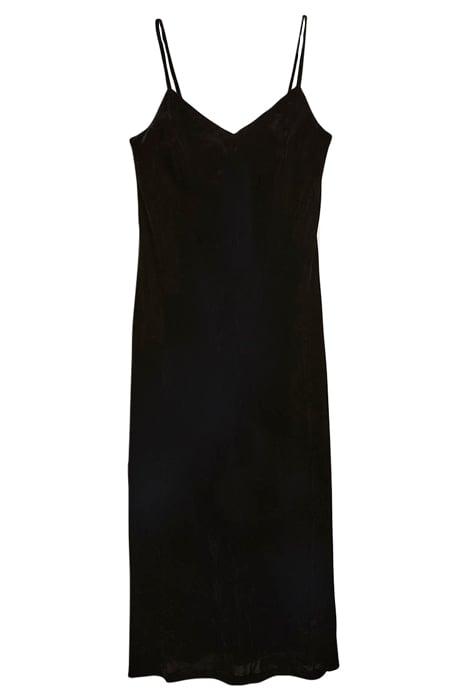 VELVET SLIP MIDI DRESS BLK