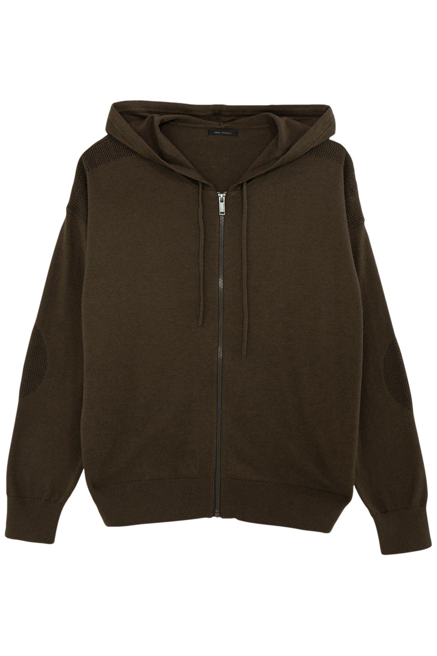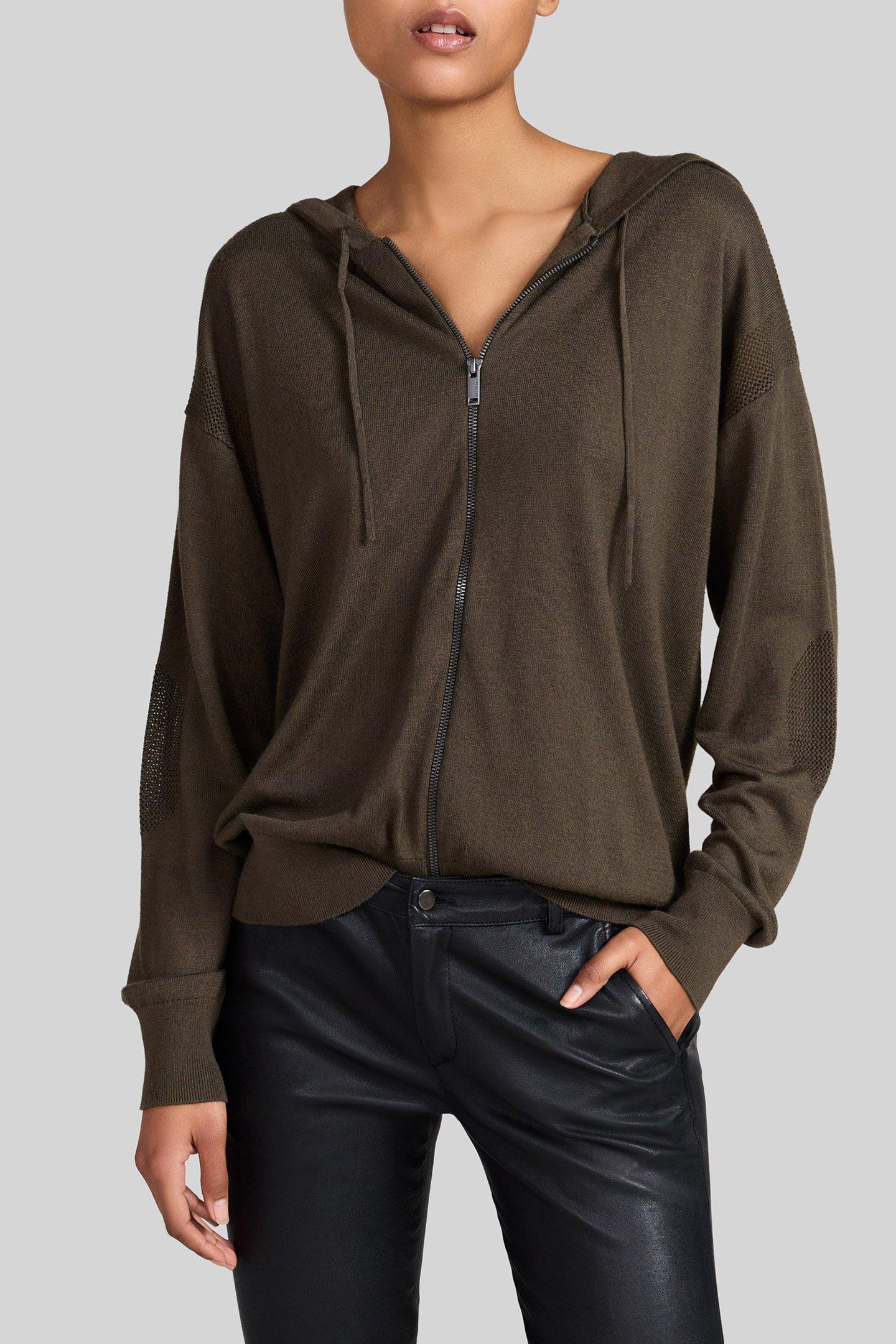 Lines Of Metallic Sequins Embroidered On The Front Of This Zipped Hooded Cardigan In A Wakame Colour Close To Khaki Add To Its Chicness.
