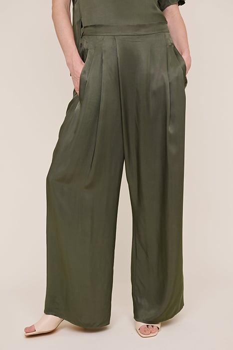 Introducing our newest model: Trousers in a relaxed fit with a silky finish. Made from a viscose fabric with a subtle sheen, they offer optimum comfort thanks to the elasticated waist and concealed zip at the side for a seamless effect. The wraparound detail at the front ensures a contemporary look, while the pockets smartly incorporated into the darts offer the perfect blend of style and functionality.